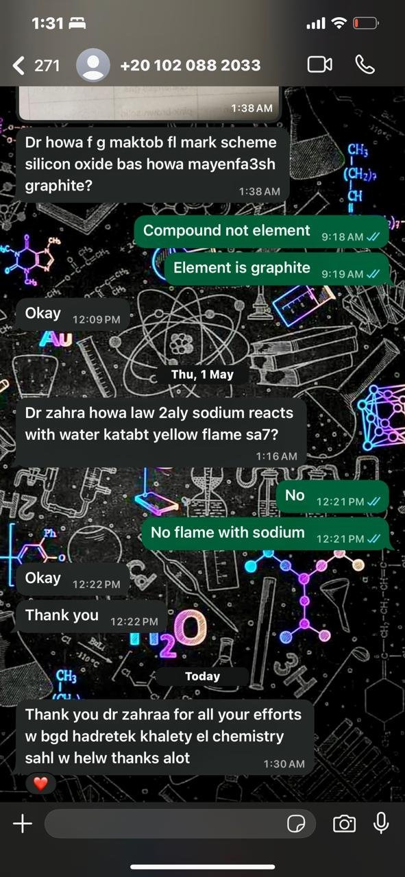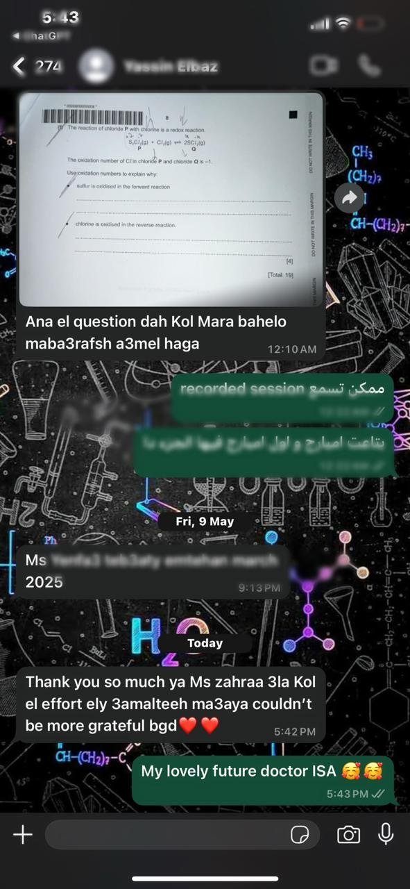 Led by AlZahraa Mohamed , we focus on simplifying every topic, strengthening your understanding, and preparing you for top exam performance.